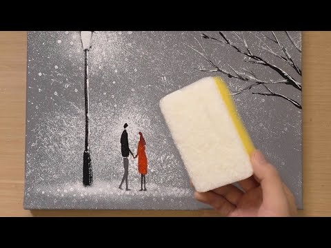 Sponge painting technique / A couple under the street light painting / Simple creative art