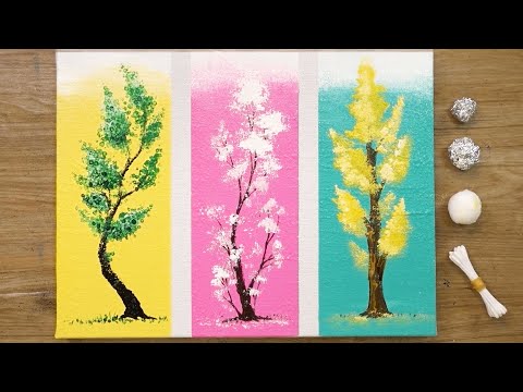 Painting three different types of tree using special tools / Acrylic Painting Technique ❖ Hello ev...
