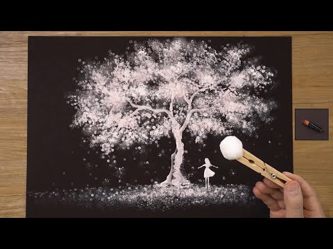 Painting of Cherry Blossom Tree in Moonlight / Acrylic Painting Techniques ❖ Hello, this is a cotto...