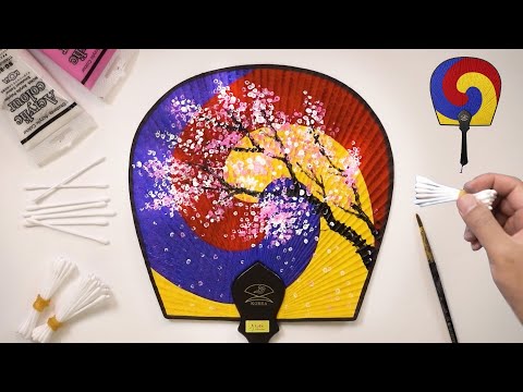 Painting on a Korean Traditional fan / Acrylic Painting Techniques ❖ My videos are showing how to p...